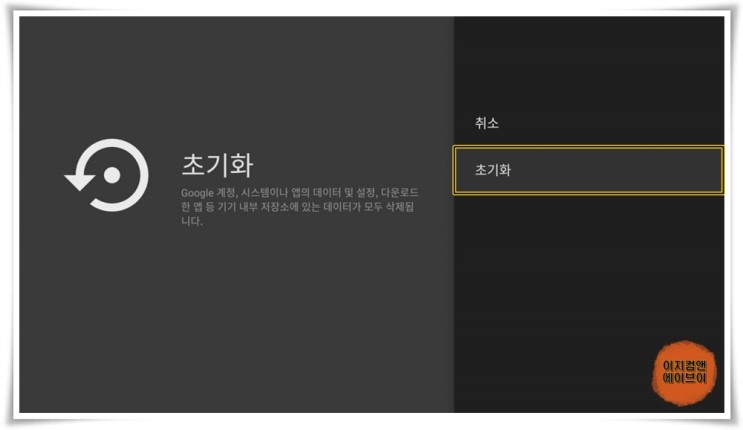' 초기화 ' 를 누르면 U5 내장 메모리를 초기화 합니다.