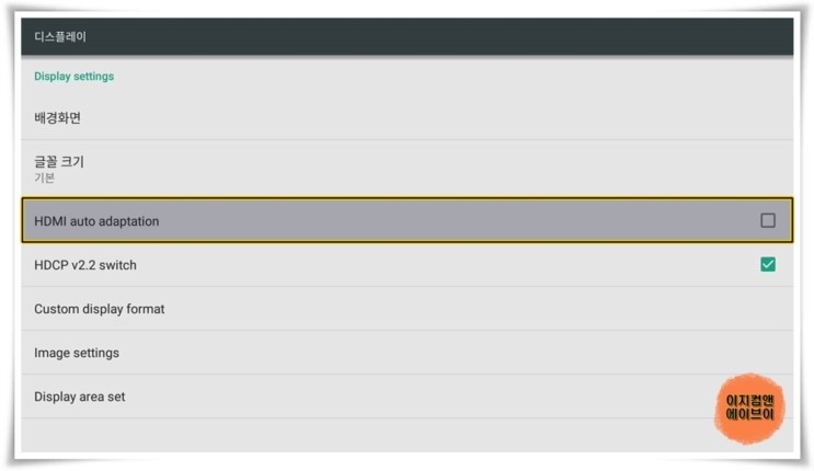 ' HDMI auto adaptation ' 항목은 HDMI 자동 적용 옵션 입니다.
