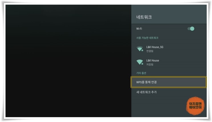 공유기가 WPS 연결을 지원하면 WPS 방식으로 연결 가능 합니다.