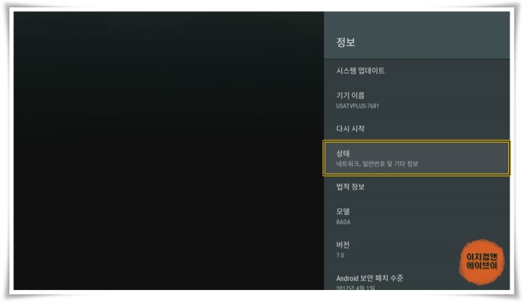 ' 정보 ' 항목을 누르면 기기 정보 확인과 시스템 업데이트가 가능 합니다.