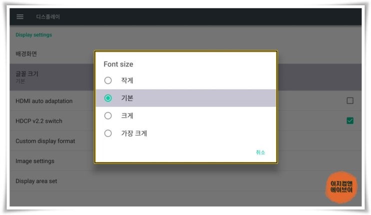 설정 메뉴의 글자를 작게 하거나 크게 할 수 있습니다.