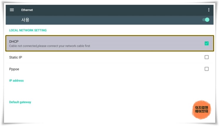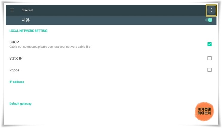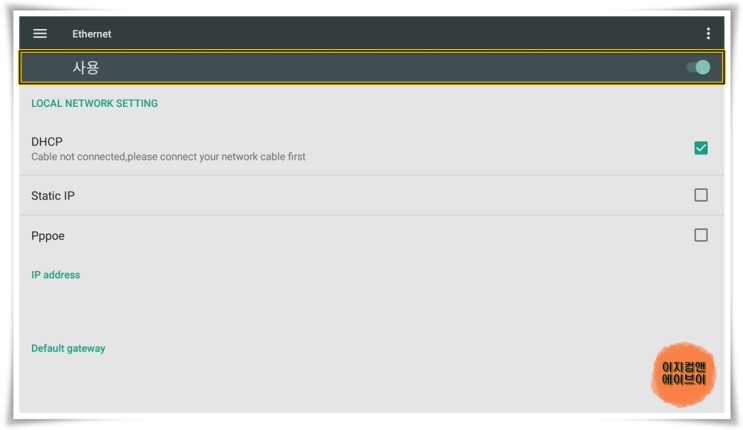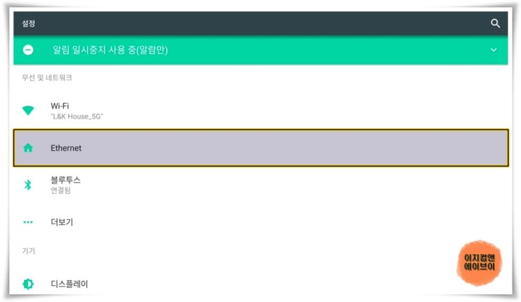 ' Ethernet ' 항목으로 들어가면 유선인터넷 접속 설정이 가능 합니다.
