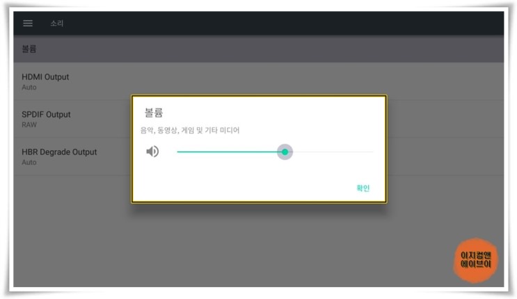 ' 볼륨 ' 항목을 통해서 출력되는 소리의 크기를 조절 할 수가 있습니다.