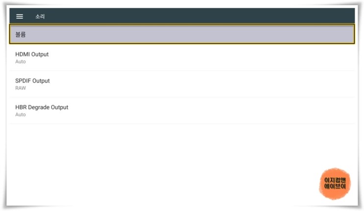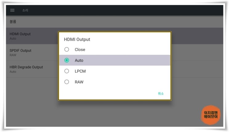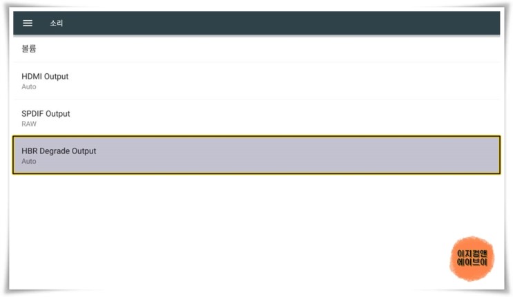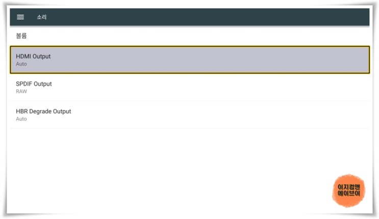 HDMI 케이블 TV와 단독 연결 시 ' HDMI Output ' 항목을 통해서 출력되는 오디오 옵션을 설정 가능 합니다.