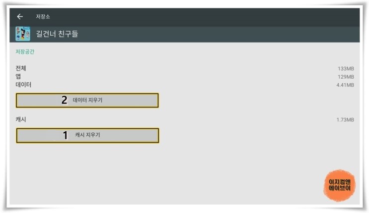 ' 저장소 ' 항목을 통해서 캐시 지우기와 데이터 지우기를 이용 가능 합니다.