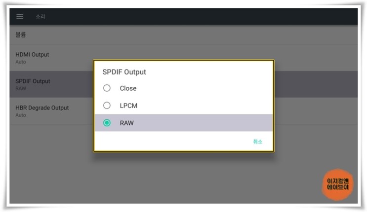 SPDIF 케이블 연결 시 ' SPDIF Output ' 항목을 통해서 출력되는 오디오 옵션을 설정 가능 합니다.
