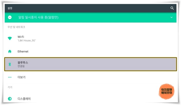 ' 블루투스 ' 항목을 통해서 블루투스 기반의 리모컨 , 이어폰 , 헤드폰 , 스피커 , 키보드 , 마우스 등등의 추가 기기의 페어링(연결)이 가능 합니다.