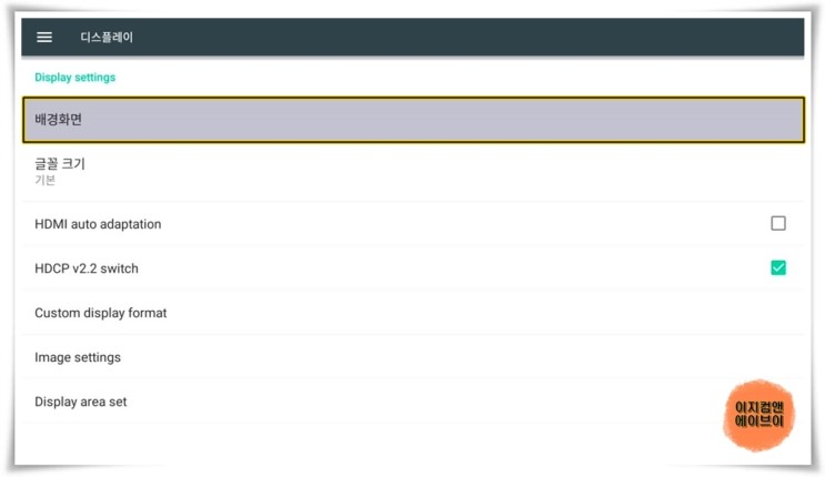 ' 배경화면 ' 메뉴는 있지만 설정이 불가능 합니다.