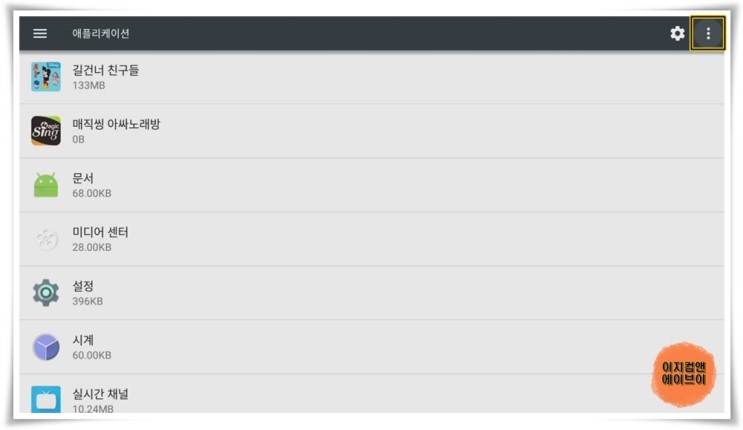 시스템 표시 ' 항목을 선택하면 시스템 기본 앱들 까지 앱 목록에 표시 합니다.