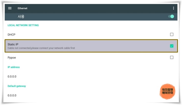수동으로 주소를 입력해야 하는 분들은 ' Static IP ' 를 ' √ ' 하시면 수동으로 IP 주소 입력이 가능 합니다.