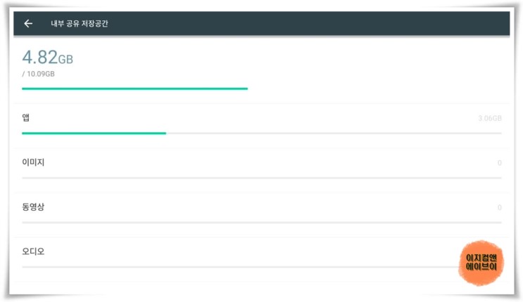 저장 공간을 얼마를 사용하고 얼마나 남았는지 확인이 가능 합니다.