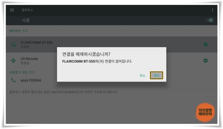연결된 블루투스 장치의 해제가 가능 합니다.