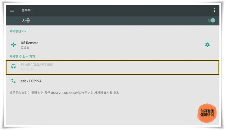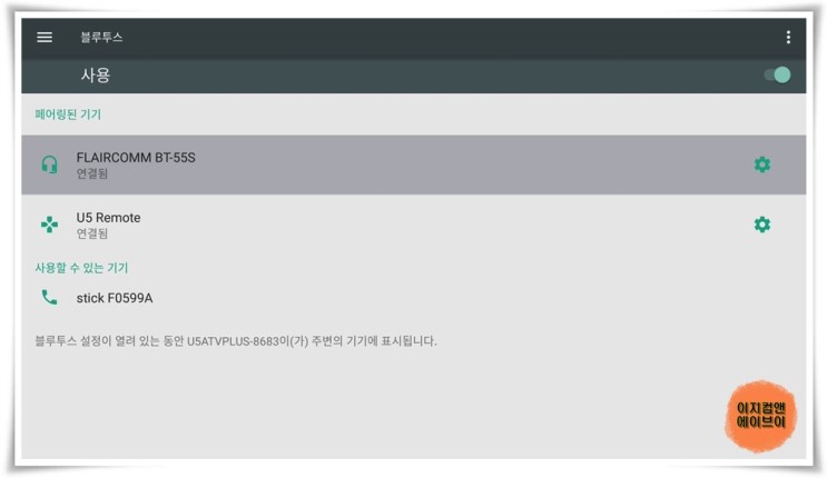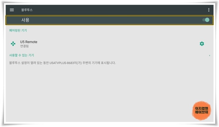 ' 사용 ' 을 눌러서 블루투스 연결을 켜고 끌 수가 있습니다.