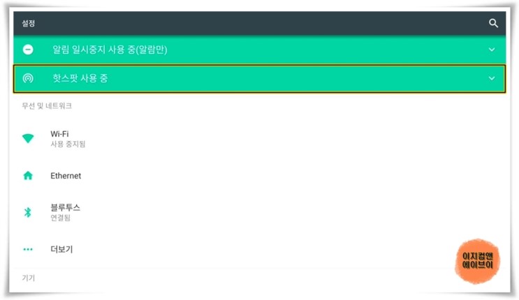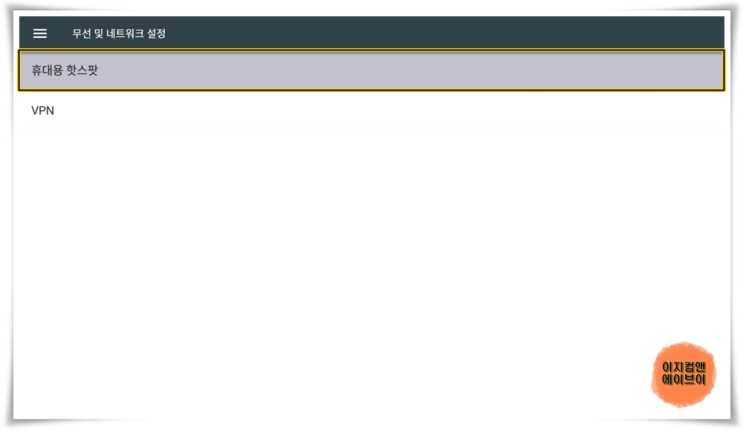 ' 휴대용 핫스팟 ' 항목을 누르면 핫스팟 설정이 가능 합니다.
