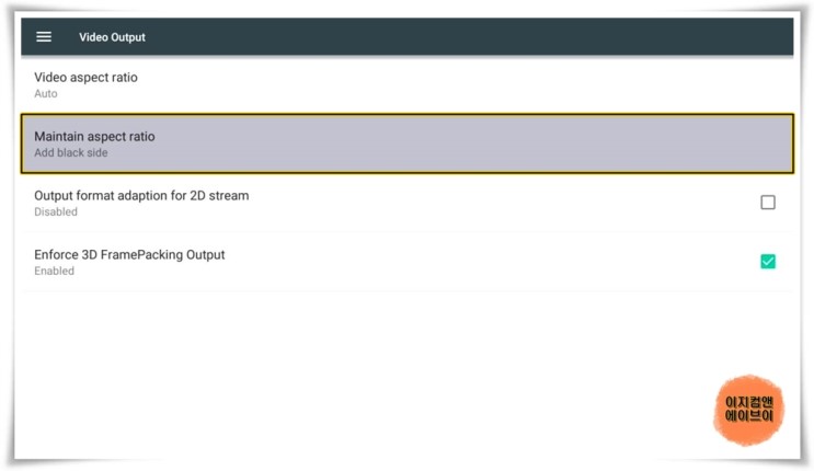 ' Maintain aspect ratio ' 꽉 찬 화면을 설정 할 수 있는 옵션 입니다.
