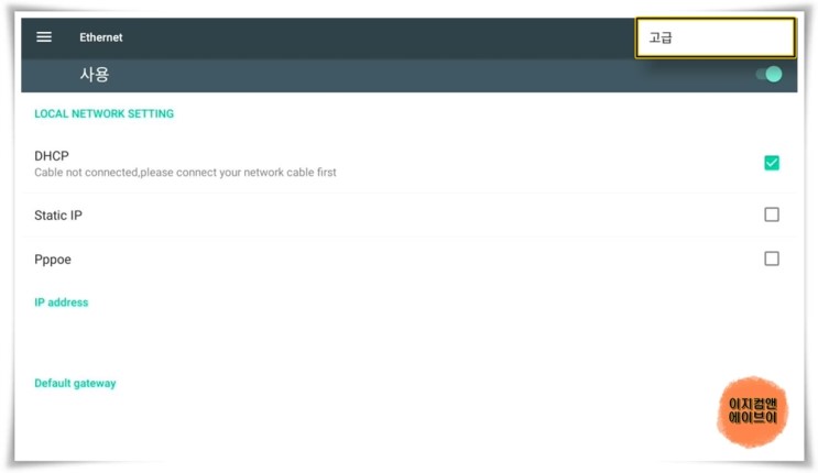 ' 고급 ' 버튼을 눌러 ' Advanced Ethernet ' 설정이 가능 합니다.