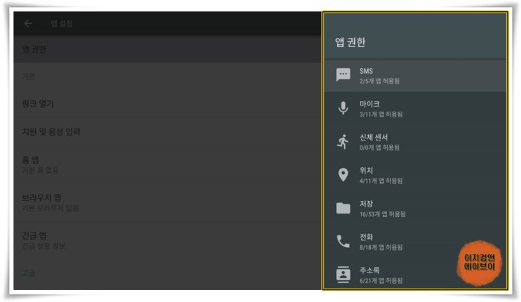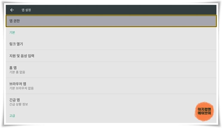 ' 앱 권한 ' 항목을 통해서 앱 별 권한을 설정 할 수가 있습니다.