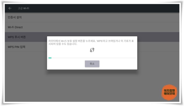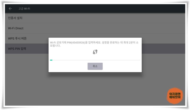 ' WPS PIN 입력 ' 을 통해서 와이파이 연결이 가능 합니다.
