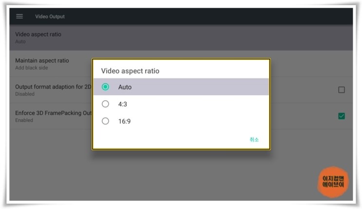 ' Video aspect ratio ' 항목을 통해서