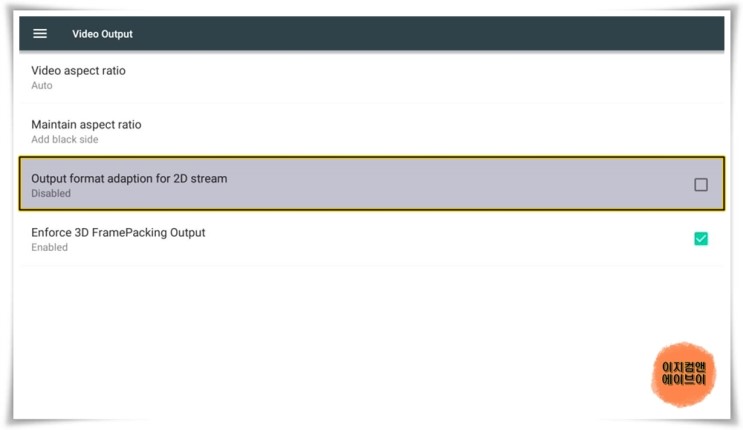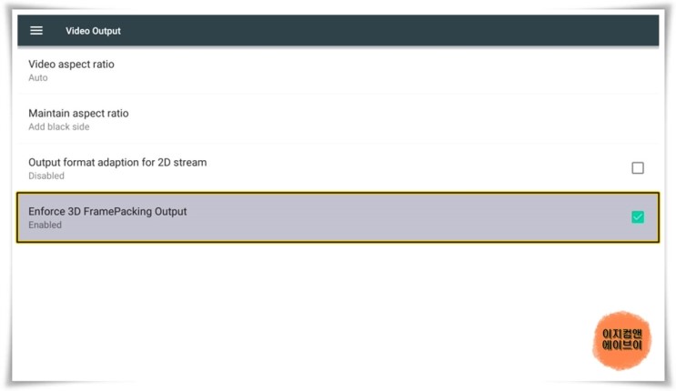 ' Enforce 3D FramePacking Output ' 항목은 ' 3D 프레임 포장 출력 시행 ' 입니다.