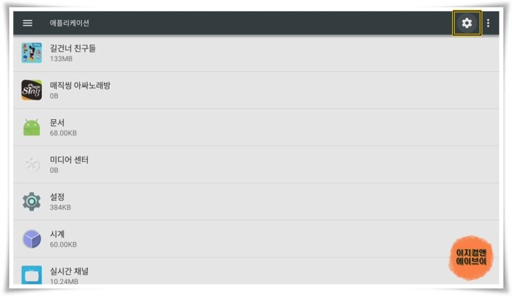 우측 상단에 ' 톱니바퀴 ' 버튼을 누르면