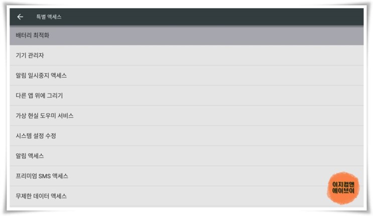 ' 특별 액세스 ' 항목을 통해서