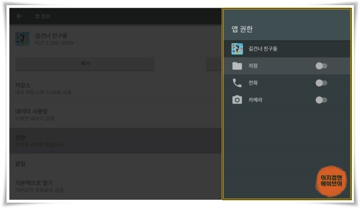 ' 권한 ' 항목을 통해서 앱 별 권한을 설정 할 수가 있습니다.