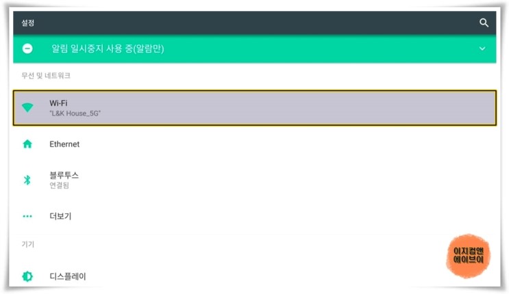 ' Wi-Fi ' 항목을 누르시면 무선인터넷 연결 설정이 가능 합니다.