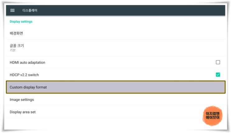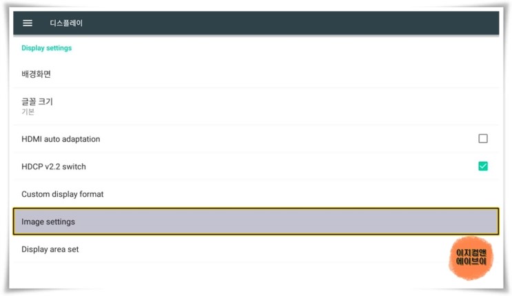 ' 디스플레이 ' 항목을 통해서 출력되는 영상의 설정이 가능 합니다.