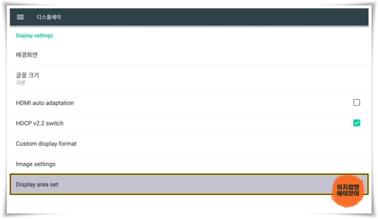 ATV 설정을 통해서 대부분의 기능 설정이 가능 하지만 일부 설정은 안드로이드 설정을 통해서 이용해야 하는 부분이 있습니다.