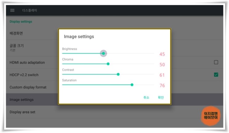 ' Image settings ' 항목을 통해서 색감의 설정이 가능 합니다.