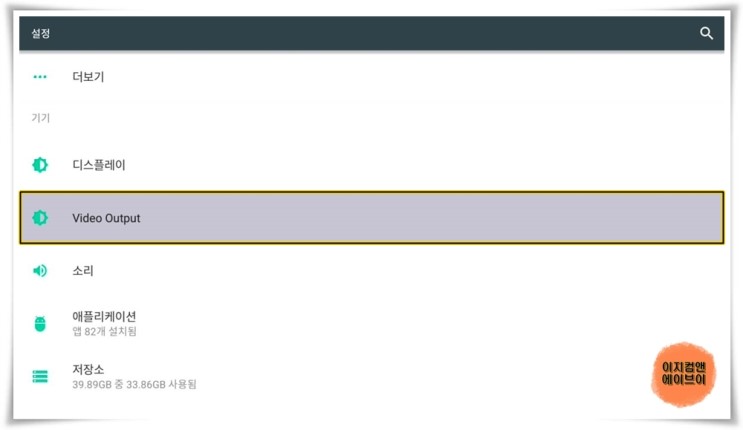 ' Video Output ' 항목으로 들어가면 비디오 출력 설정이 가능 합니다.