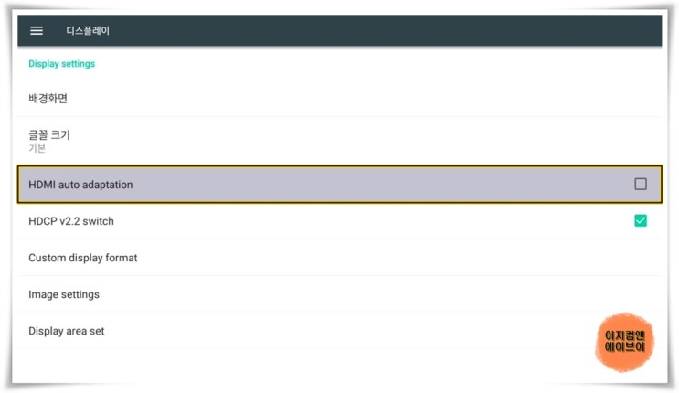' HDMI auto adaptation ' 항목은 HDMI 자동 적용 옵션 입니다.