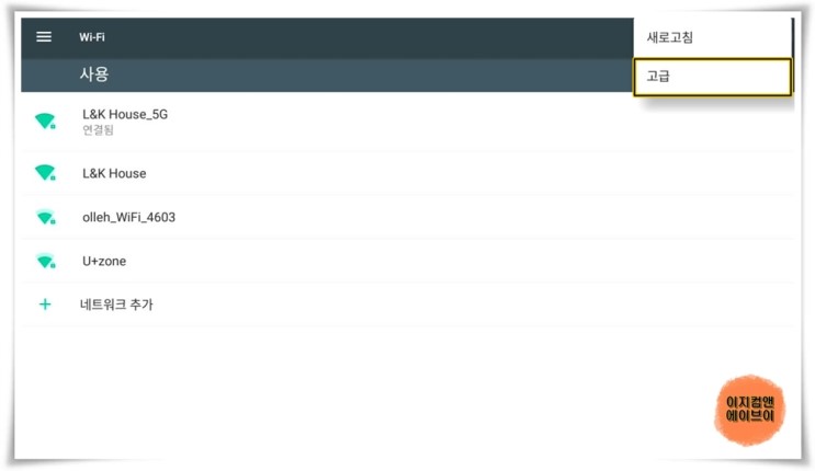 ' 고급 ' 버튼을 눌러 ' 고급 Wi-Fi ' 설정이 가능 합니다.