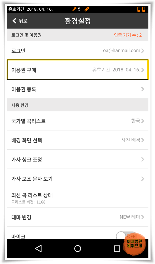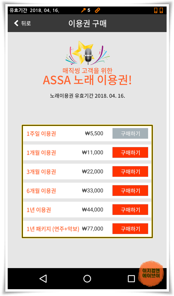 블루투스 노래방 마이크 구매 시에 1년 이용권이 기본 포함 되어 있습니다.