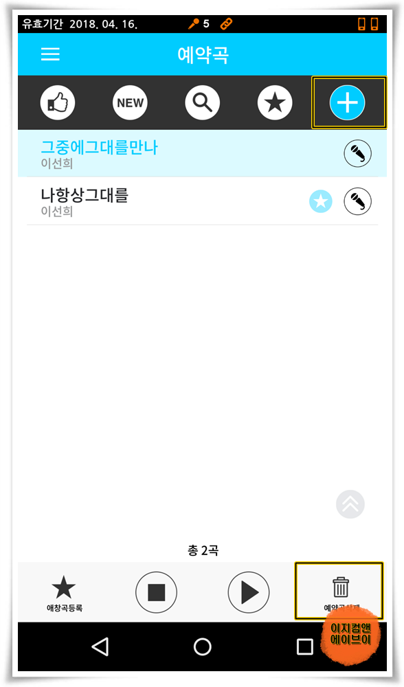 이 상태에서 ' + 예약곡등록 ' 버튼을 눌러 주시면 됩니다.