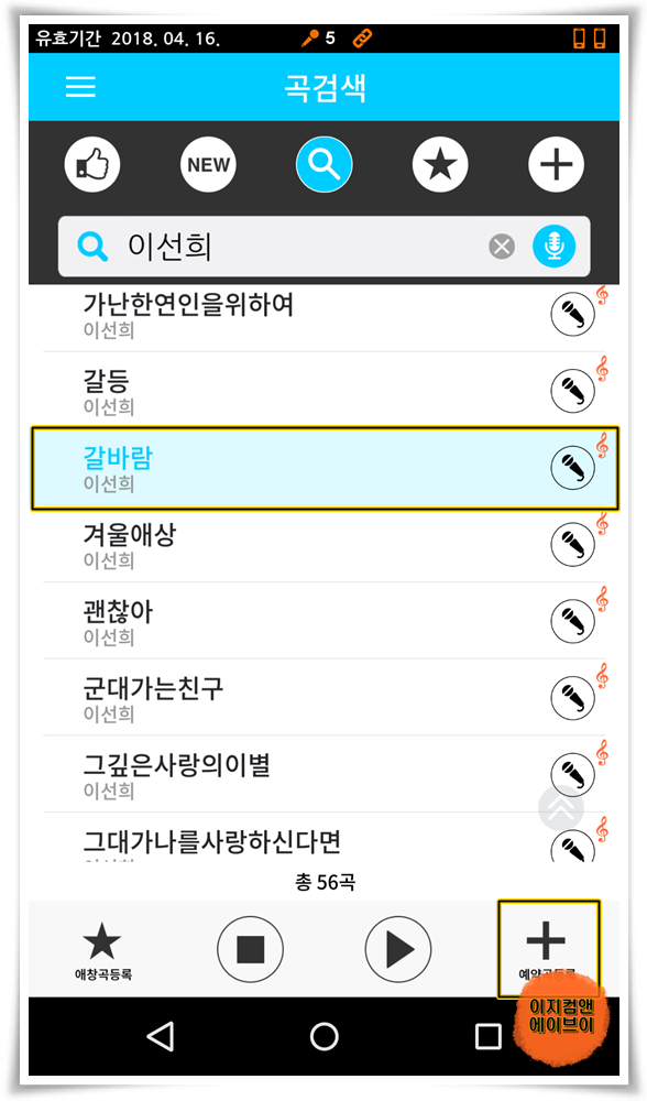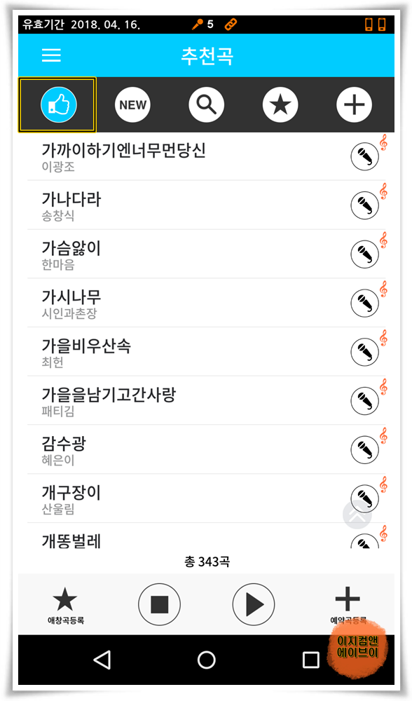 곡제목을 누르시면 스마트기기에서 반주가 나옵니다.