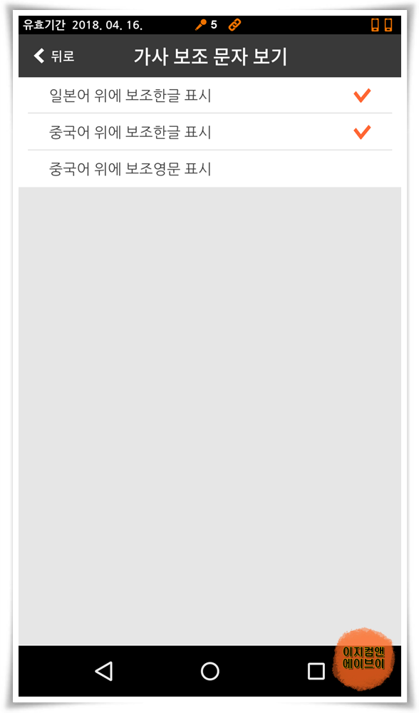 일본어와 중국어 위에 보조 한글 표시가 가능해서 일본노래나 중국어 노래를 쉽게 따라 부를 수 있습니다.