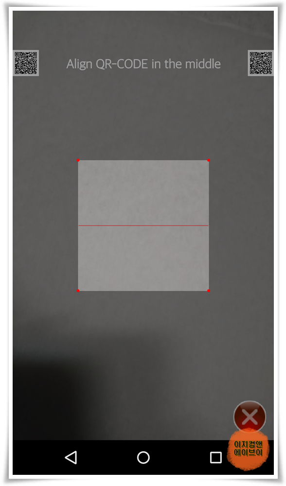 QR 코드를 찍을 수 있도록 카메라가 활성화 되면 U5 화면 하단에 QR 코드가 중앙 네모 칸에 잘 들어오게 스마트 기기 위치를 조정 해주면 자동으로 연결 합니다.