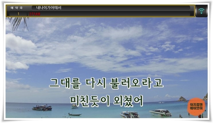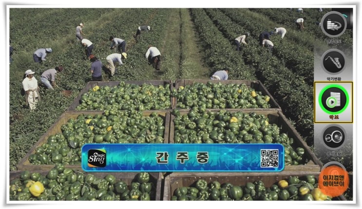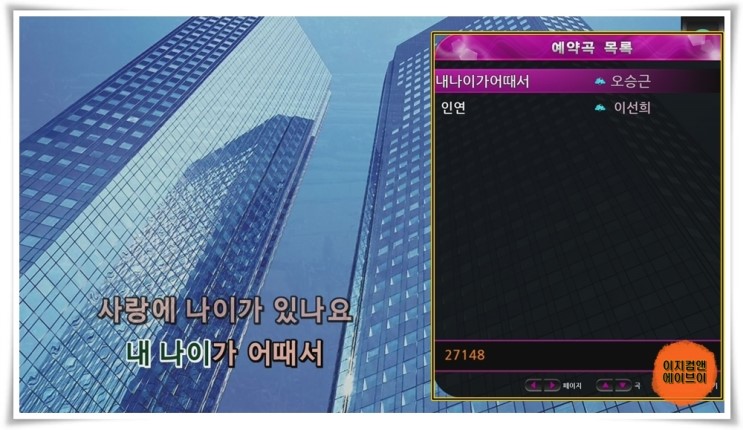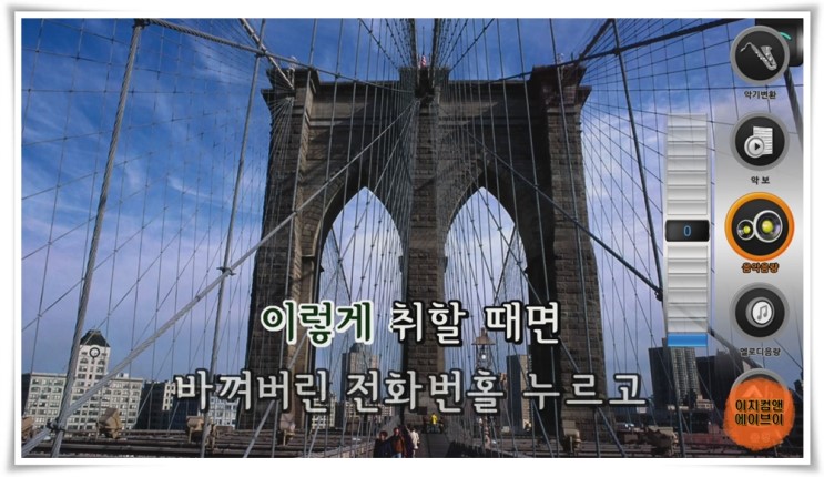 노래 반주가 실행되면 곡목과 가수명이 표시 됩니다.