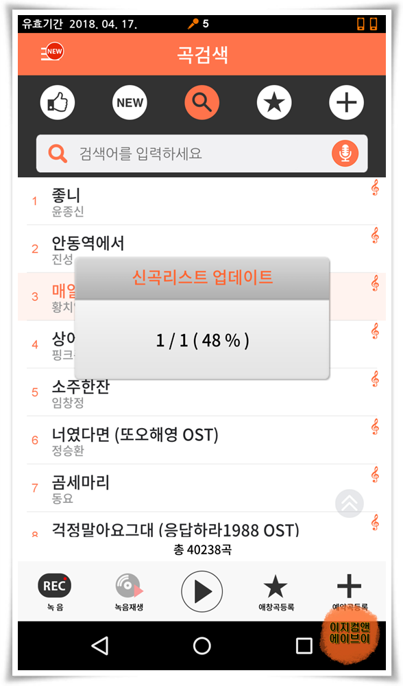 신곡 업데이트는 무료 체험기간 하루 5곡 체험 상관없이 무료로 업데이트가 가능 합니다.