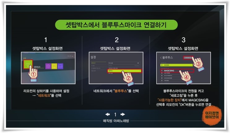 셋탑박스에서 블루투스 마이크 연결하는 방법을 설명 합니다.