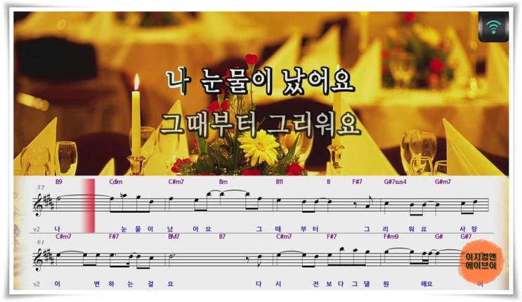 ' 간주중 ' 에는 간주중 이라고 표시 되며 ' 악보 ' 보기 기능을 지원 합니다.