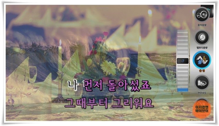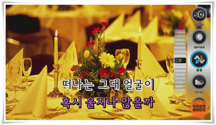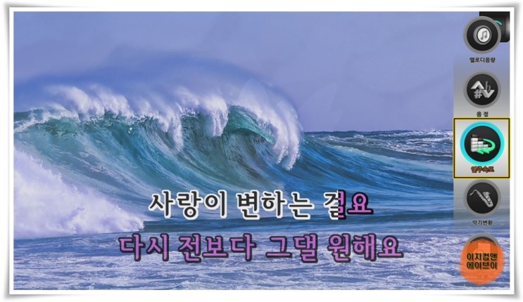 리모컨에 ' 좌 , 우 ' 방향키를 누르면 노래 반주의 설정 메뉴가 나옵니다.