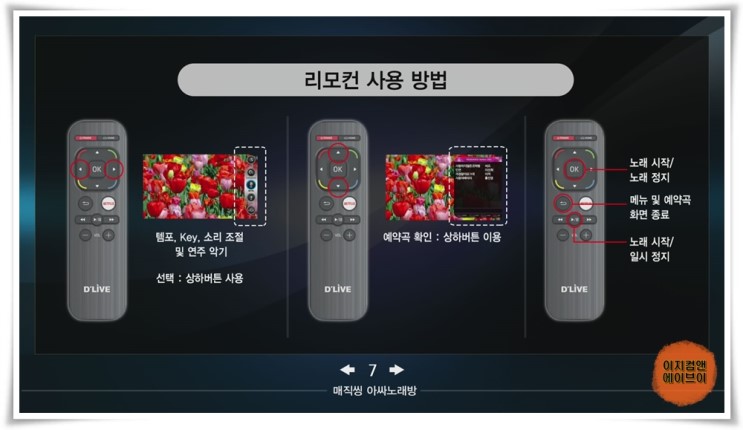 리모컨 사용 방법을 설명 합니다.
