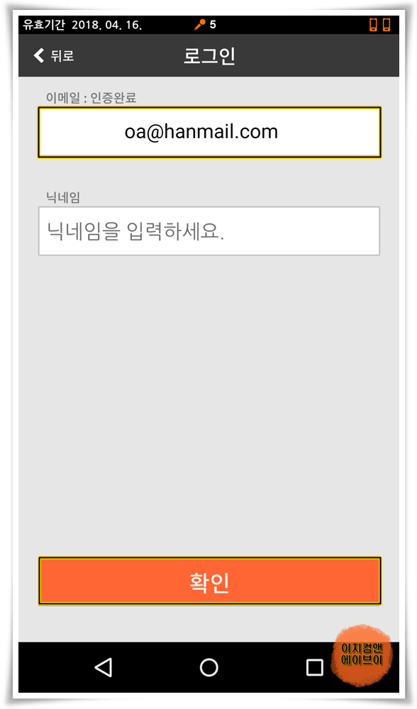 이메일 적고 ' 확인 ' 버튼을 눌러 주시면 됩니다.