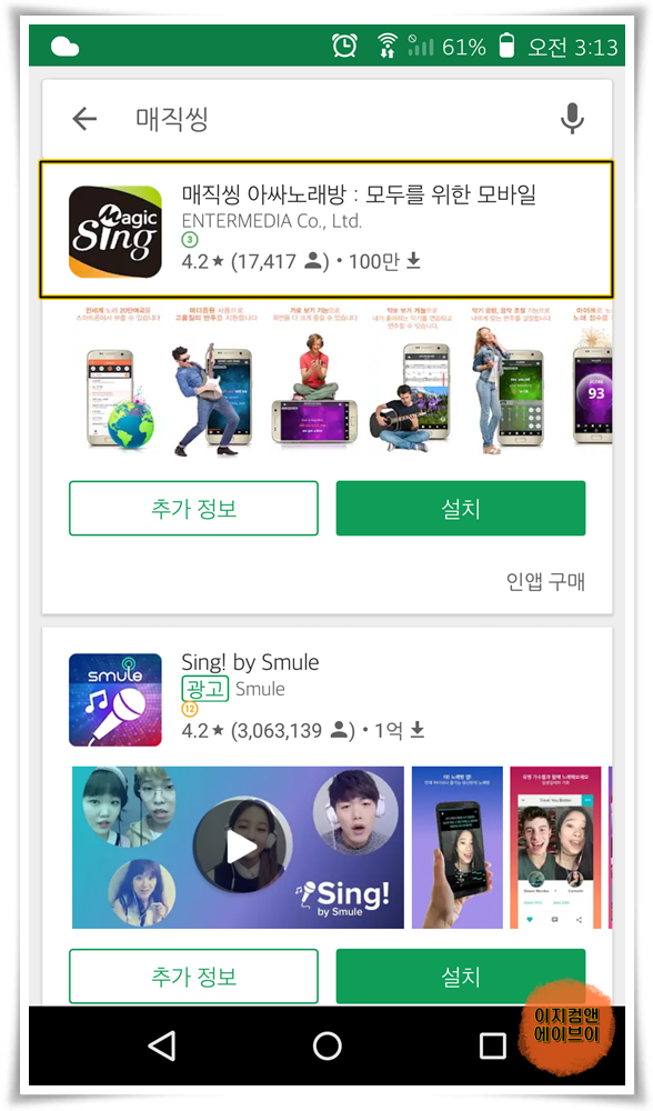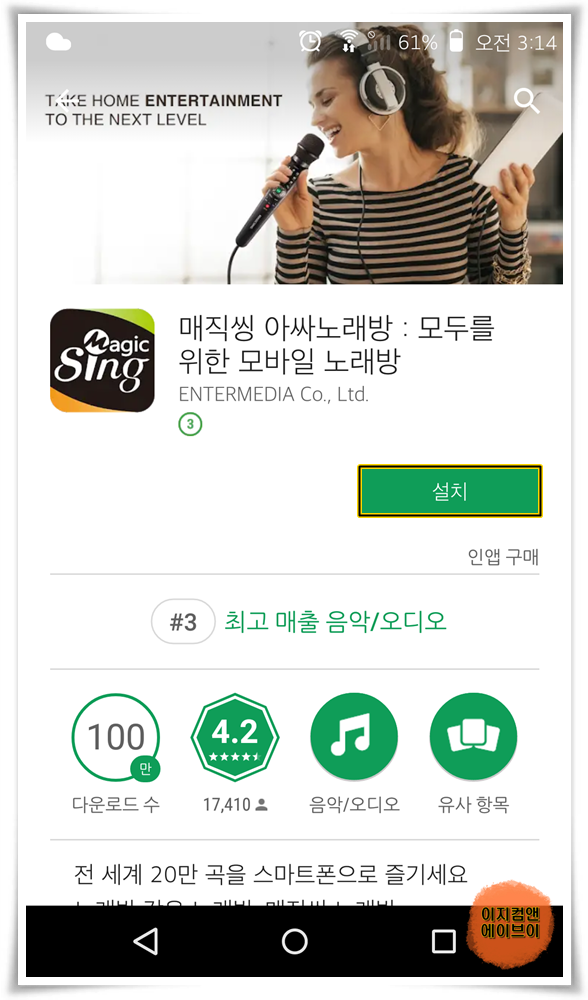 안드로이드 스마트폰에서 매직씽 아싸노래방 앱 설치 방법을 설명 합니다.