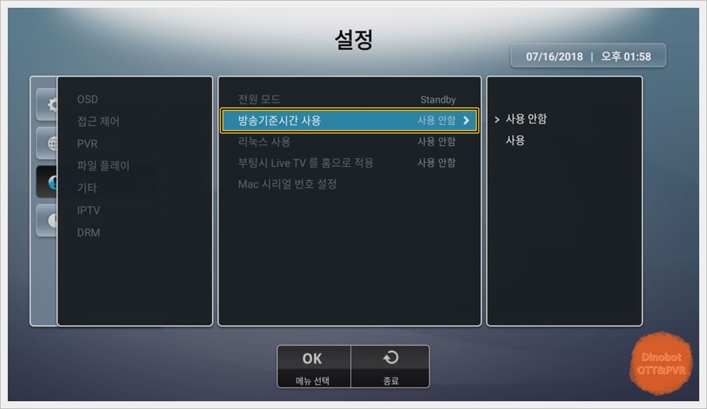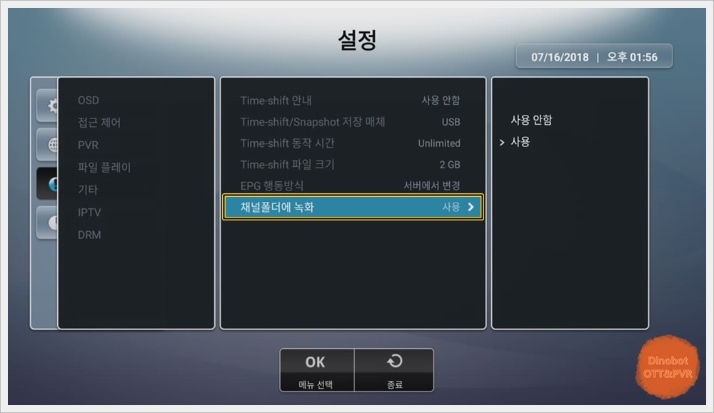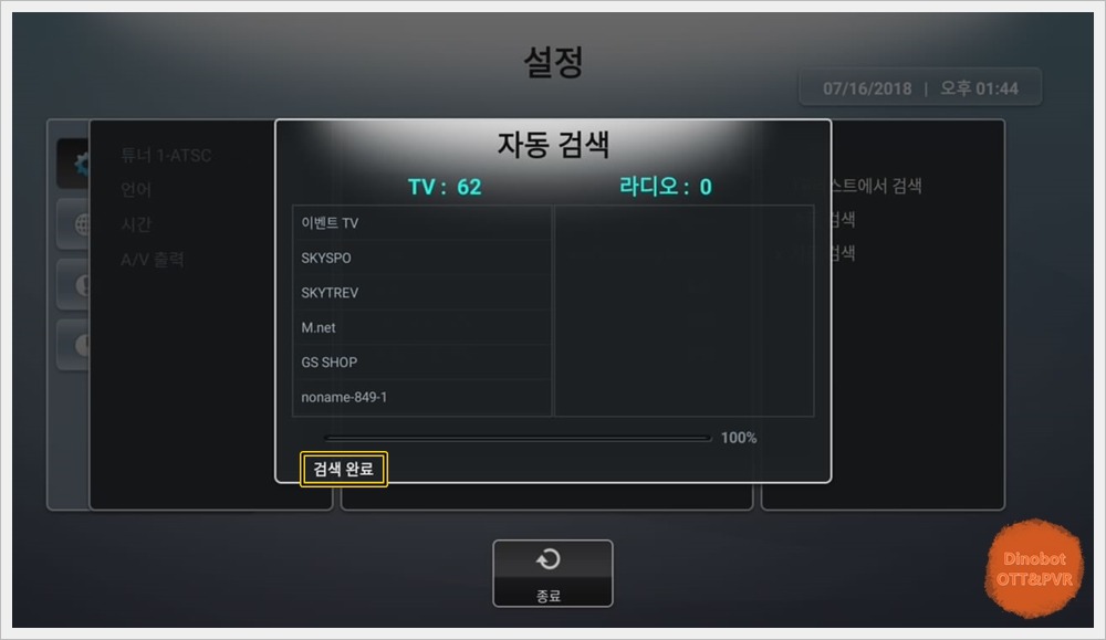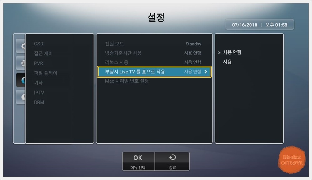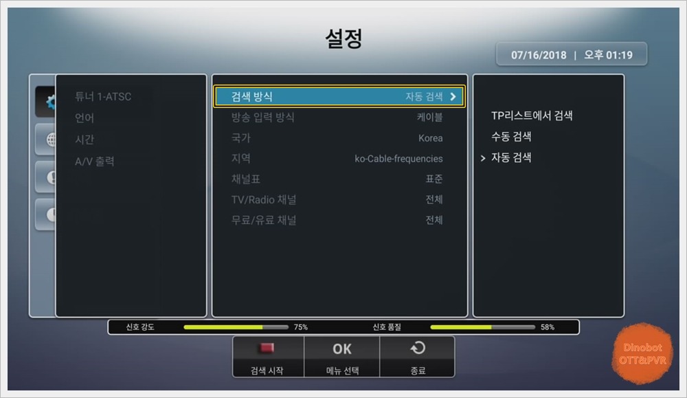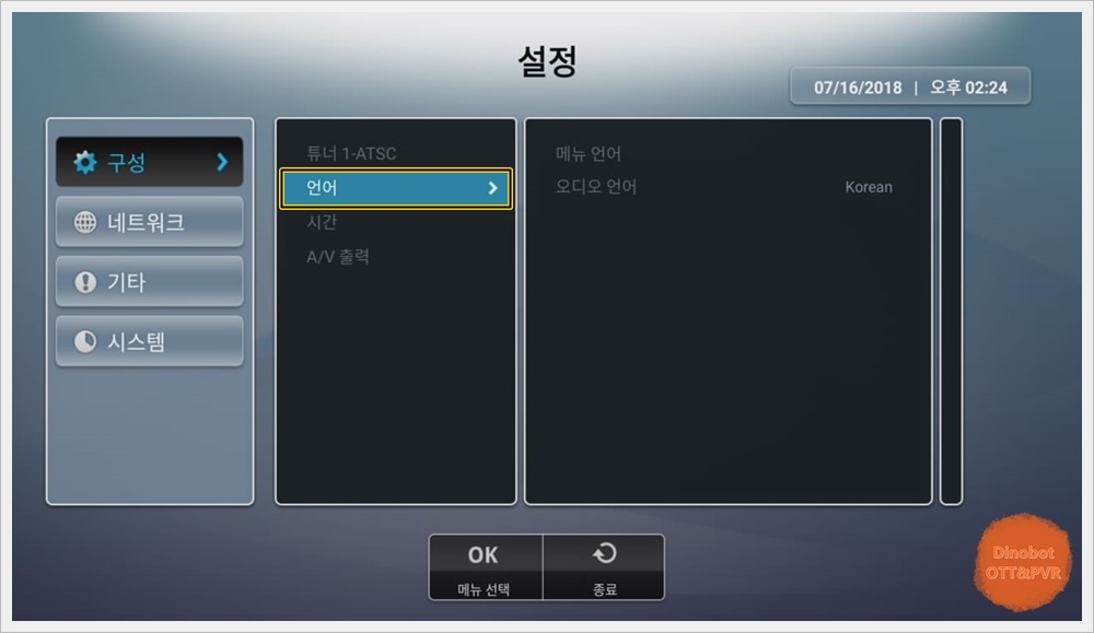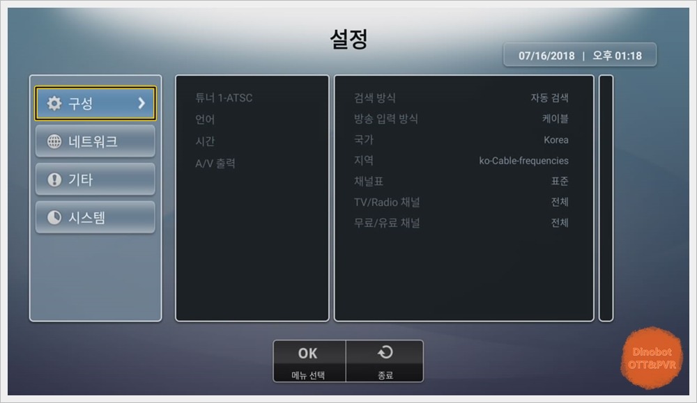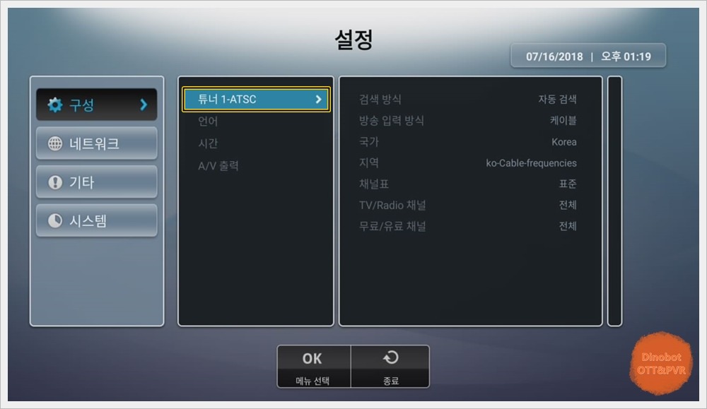 · 다이노봇 ATV7 사용자 매뉴얼 13부:LIVE TV & IPTV 환경 설정