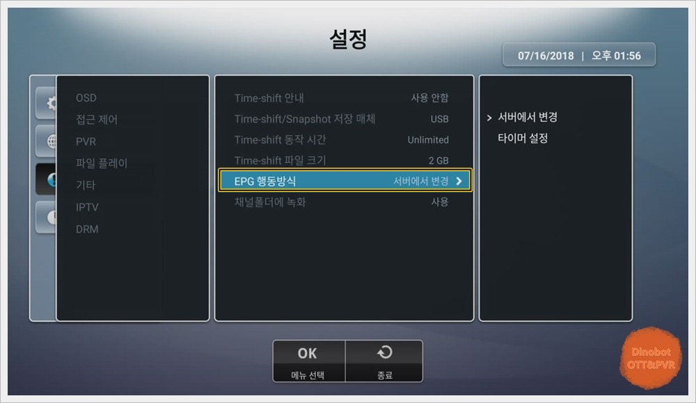 ' EPG 행동 방식 ' 설정을 통해서 EPG 행동 방식을 지정 가능 합니다.
