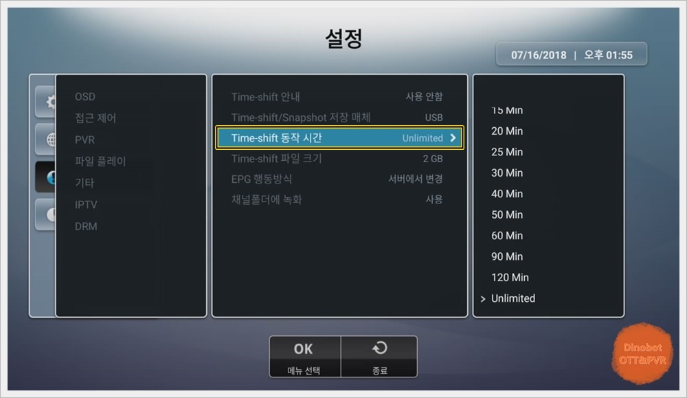' Time-shift 동작 시간 ' 설정을 통해서 ' 타임 시프트 ' 최대 동작 시간을 설정 가능 합니다.